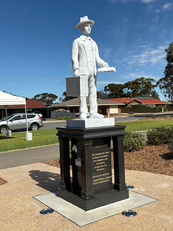 Rotarian John Scarvelis and I also attended the unveiling of the Italian monument on Adelaide Road. The invitation came from the President, (Mr Gerardo Penta), Murray Bridge and District Italian Association. It was an honour to be at the event which demonstrates another cultural link to the history of Murray Bridge