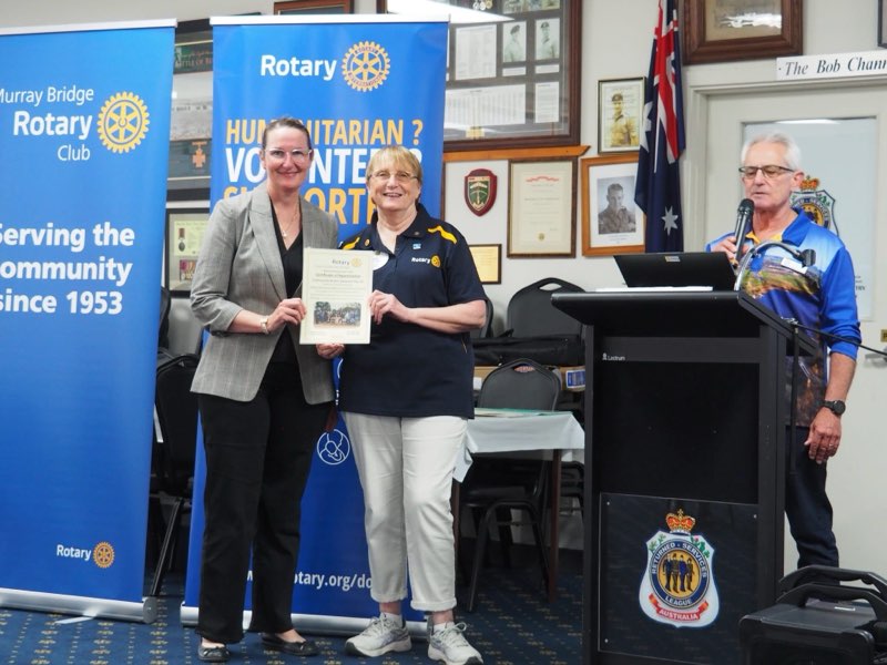 We really did a great job at displaying what we do, and achieve with our dedication toward making a difference through Rotary. Speaking with the attending guests, they found the displays astounding for what we achieve working as a team. Bunnings comment - “we want to know what extra we can do for the Rotary Club of Murray Bridge”. Callington Primary - we are working with them towards a Peace Pole, having the display has assisted with the purpose of the pole. Program Sponsors - felt very welcome & proud to be part of our support, quite keen to see the extra projects we provide to the communities local and beyond. Invited Guests - excited to see what we had on display with the various areas we support, this has sparked some interest with them and with a follow up we may achieve extra volunteers. Attendance in total of 42 = 27 Rotarians, 1 Rotarian partner & 14 non-Rotarian guests. Our Guests attending: (2) - Principal & Admin Officer from Callington Primary. (4) - Business Owner/ Managers “Program Sponsors” (2) - Bunnings representatives (6) - Invited Guests