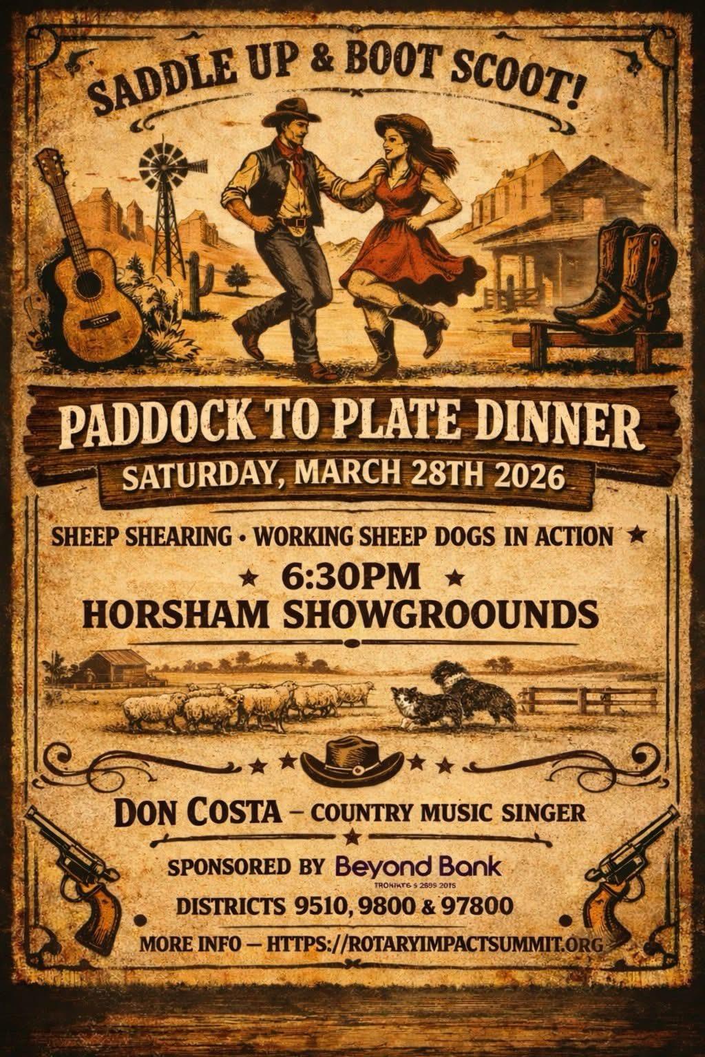 Please see the details below regarding the Summit Dinner on Saturday night 28th March. The Paddock to Plate theme should be a real hoot. Ensure you have booked your place at the Summit and also at the dinner. Stephen and Alicia Walker still have rooms available at their accommodation, if you need somewhere to stay. It should be a great weekend of creating new friendships, renewing the links we made at past summitsand conferences and being inspired by a range of speakers and activities’
