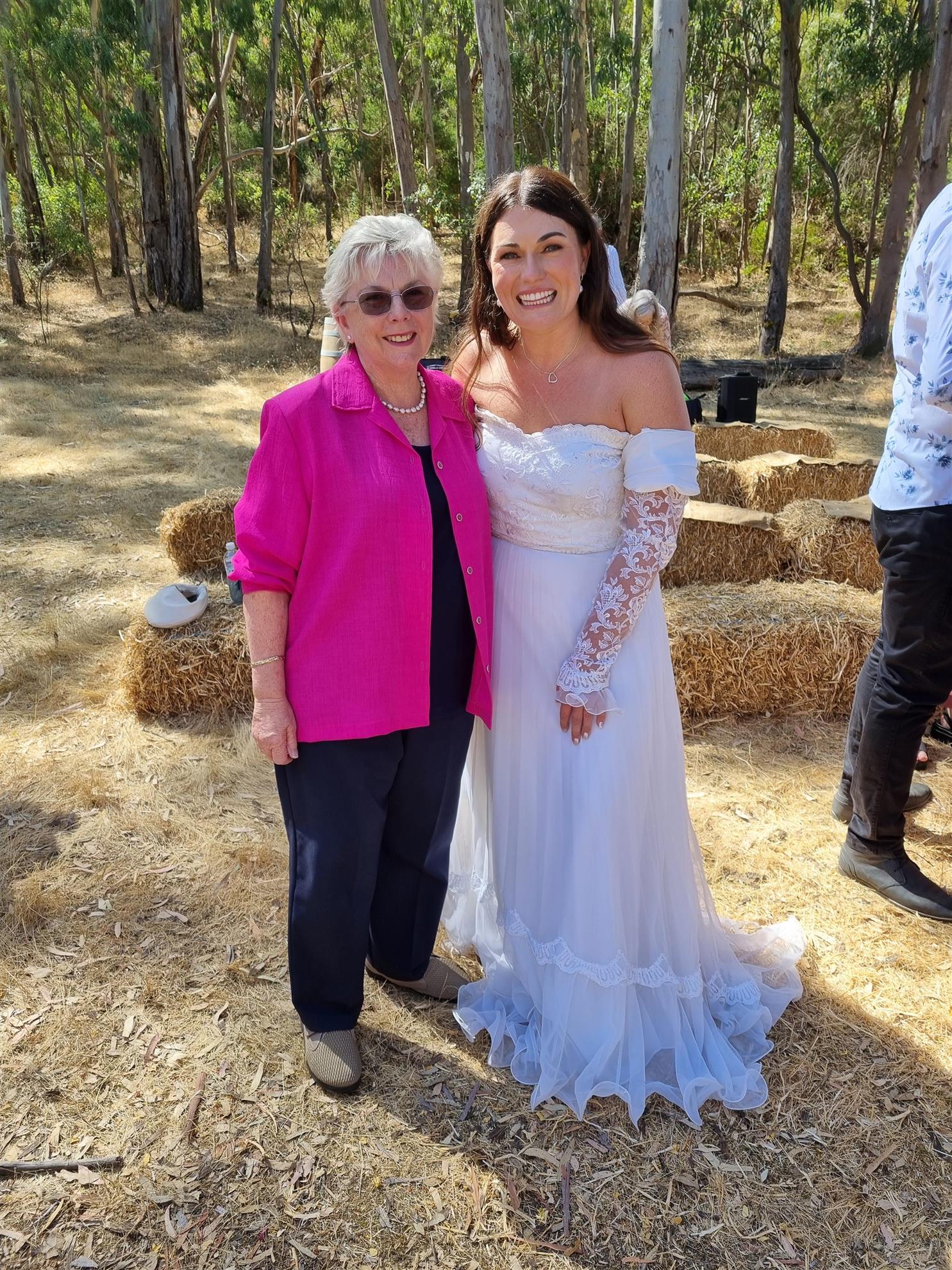 On Friday 6th February, Peter and I were privileged to attend the wedding of Kayla McDiarmid (RANZSE student 2011, sponsored by our Club), to Liam Terry at Inman Valley. The wedding venue was a secluded little gully on Kayla's grandparents' property. She arrived with her bridesmaids on a tractor!!