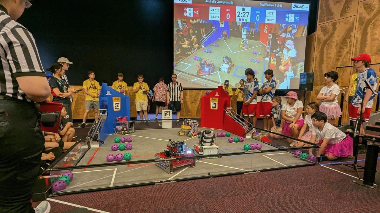 “The 2025 Australian FTC (First Tech Challenge) Championships have begun. Murray Bridge Teams actually made it to Macquarie University – despite Jetstar cancelling our Thursday flights AND the Harbour Bridge turning 6 lanes into 1. (being caught in a traffic jam at 11.00 pm on the Harbour Bridge with a group of teenage students was not in the plans). It’s time for fun!’ said Fiona. Students were amazed to find members of the 2023 MBHS team featured on the welcome banner – another promotion of the excellent work Fiona and her team have accomplished at MBHS.